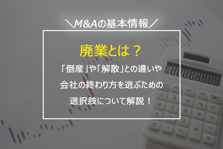 廃業とは?「倒産」や「解散」との違いや会社の終わり方を選ぶための選択肢について解…
